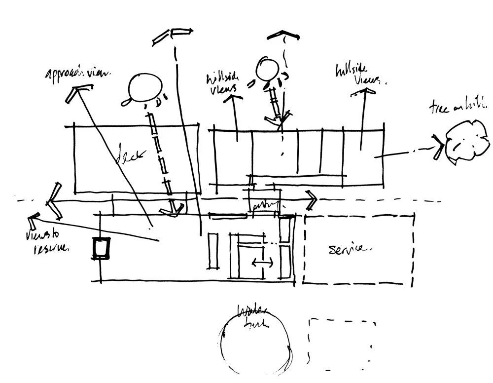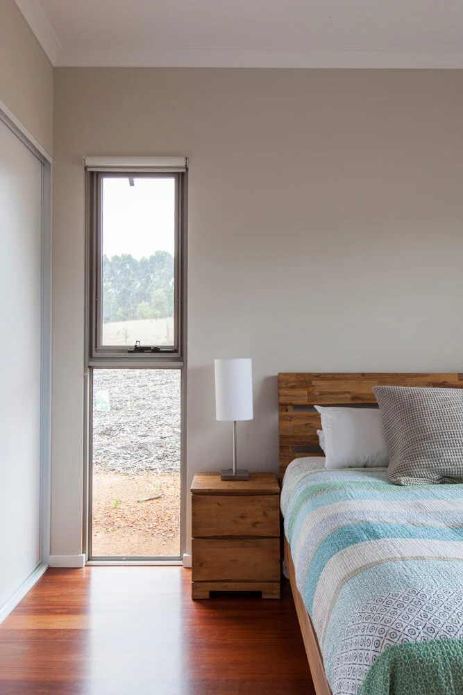 The house has a simple, contemporary aesthetic appropriate to its rural location. Orientation maximises passive solar gain in winter, minimises impact on the existing topography and takes advantage of the spectacular views over the surrounding landscape and bush reserve to the north west.