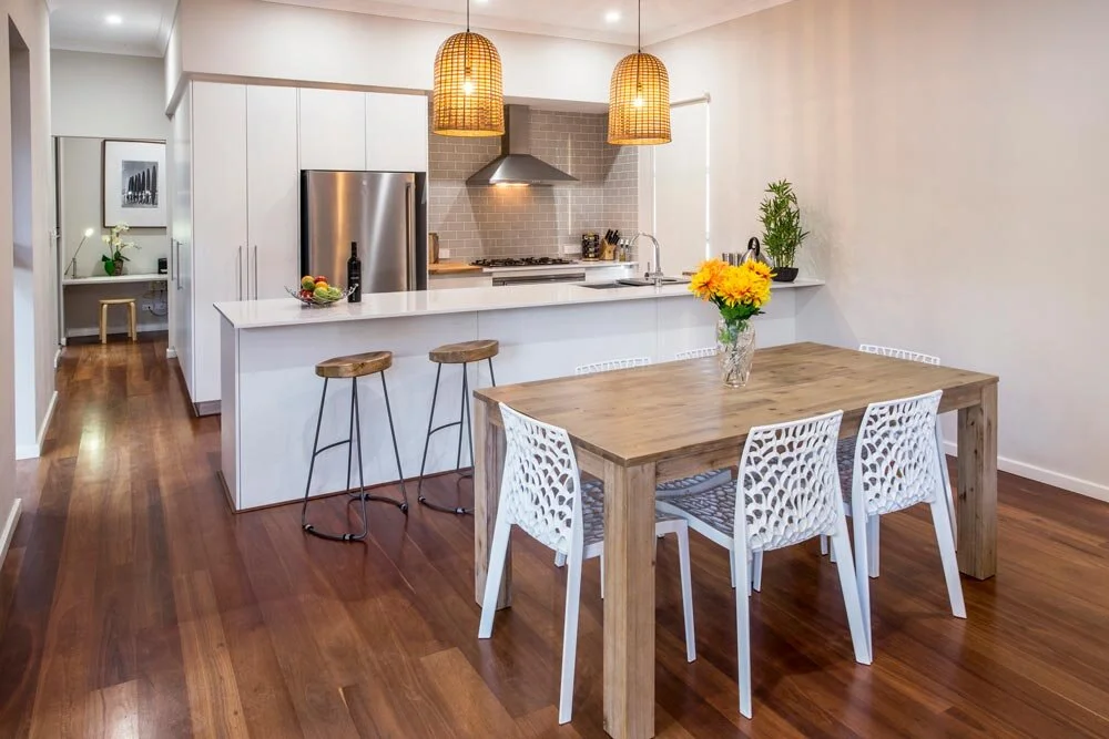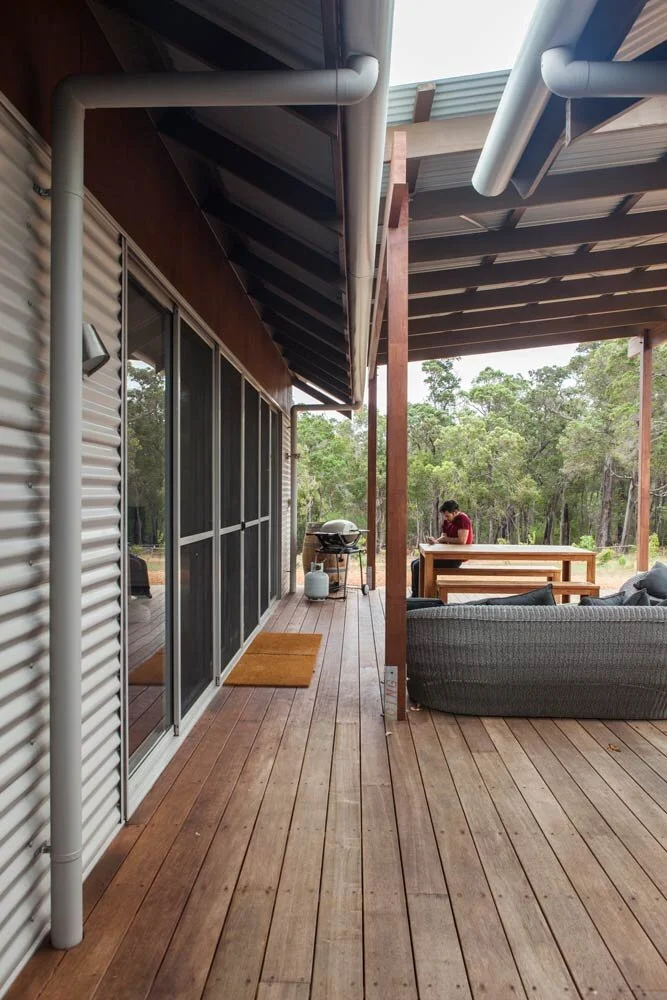 The large, covered, north facing deck is the heart of the house. It provides a sheltered outdoor living/ dining area that works as an extension to the indoor living/ dining area. Indoor & outdoor spaces are connected through large stacking sliding doors.